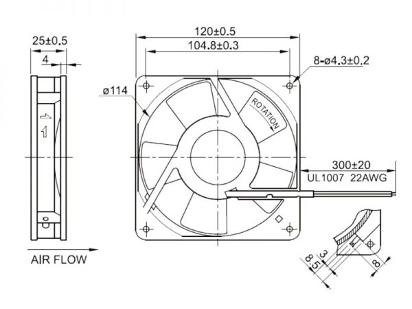 Quạt hút tủ điện FULLTECH UF-12B11 BTH, 115VAC, 120x120x25mm