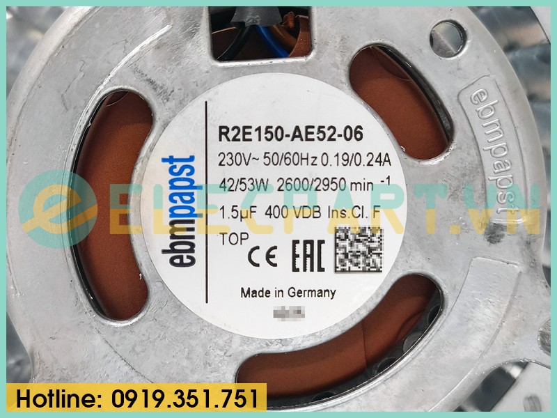 Quạt ly tâm EBMPAPST R2E150-AE52-06, 230VAC, 150mm
