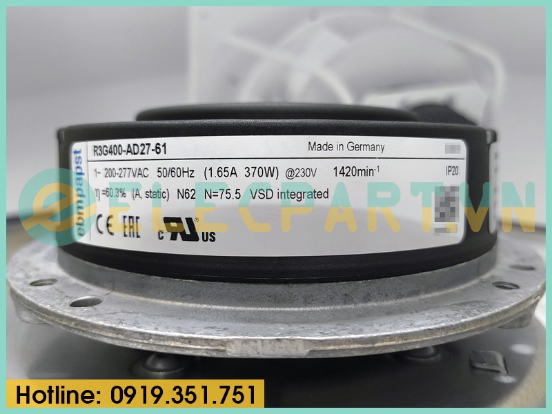 Quạt tản nhiệt EC EBMPAPST R3G400-AD27-61, 230VAC, 400mm